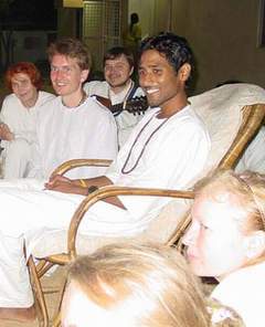 There are 120 hundred monks and nuns, and the number of bhaktas is presently two hundred and growing rapidly.